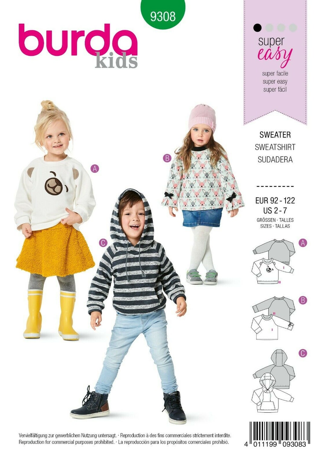 Burda Kids Pattern Sweatshirt Hoodie Sweater No 9308 Etsy