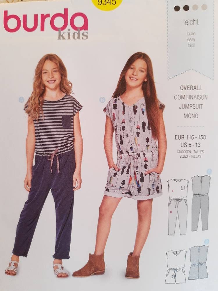 Burda Kids Jumpsuit Pattern Easy Playsuit Or Romper 9345 Etsy Ireland